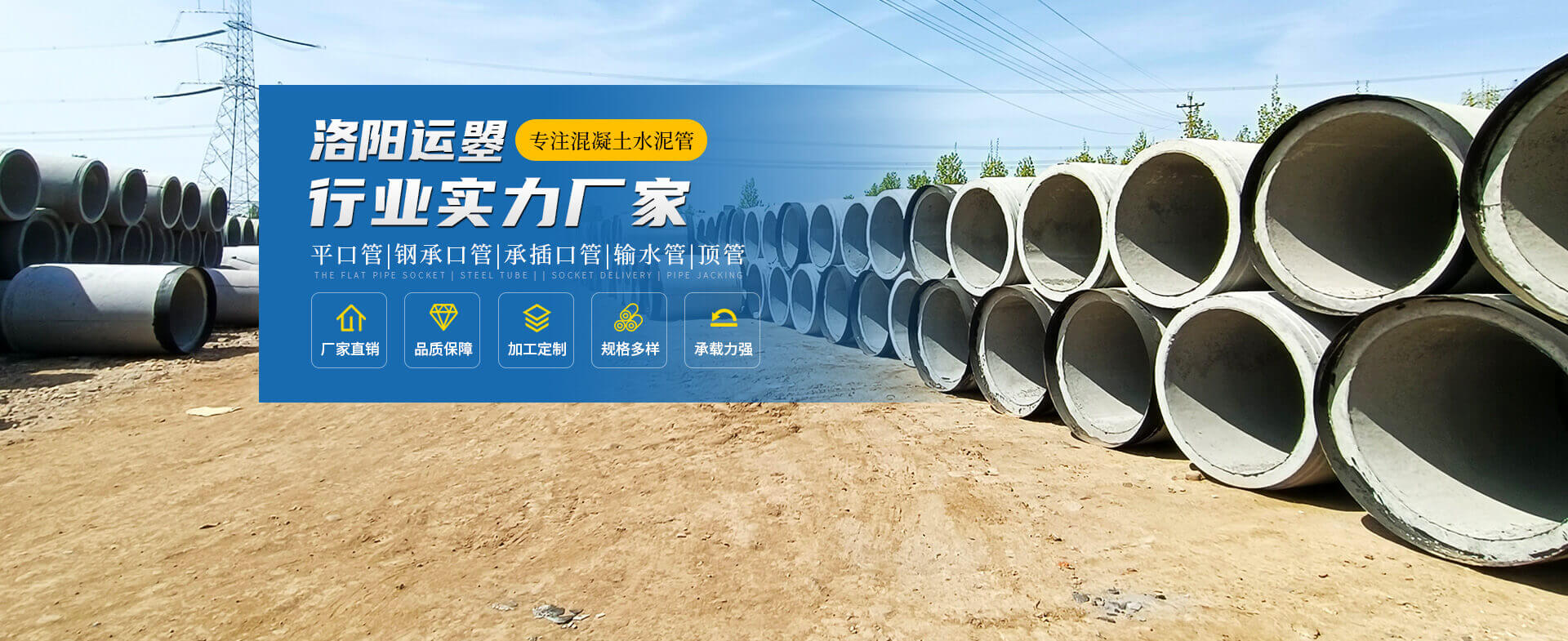 - 洛陽運曌建筑材料有限公司專于從事水泥制品開發(fā)、制作、生產、銷售、工程服務為一體的綜合性企業。主要生產鋼筋混凝土排水管、鋼承口頂管、承插管、平口管、雨污井蓋、路沿石、水泥預制板、仿木圍欄護欄系列、畜牧系列等混凝土水泥預制品。 我公司生產的鋼筋混凝土排水管是依據執(zhí)行標準GB/T11836-2023生產檢驗、擁有三條懸輥工藝生產線;型號300-3000;年生產能力達30000米左右,質量是企業之本.........了解更多>>